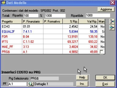 Spese generali : Ripartizioni da Modello dinamico creato dal Cruscotto Prg