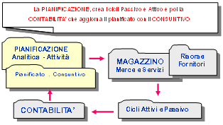 Da questa particolare pianificazione saranno avviati i Cicli Passivo e Attivo (Contratti a For. Ris. e Clienti, quindi Ordini seguite da Fatture e infine PNota.